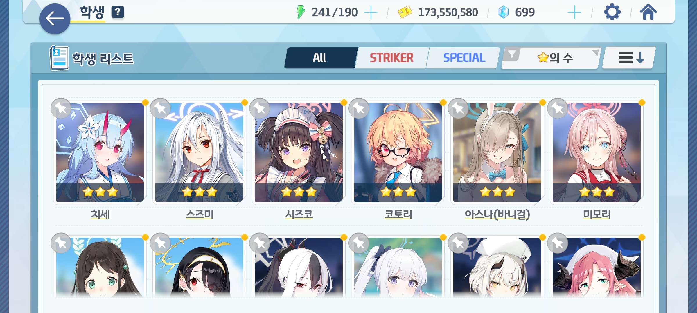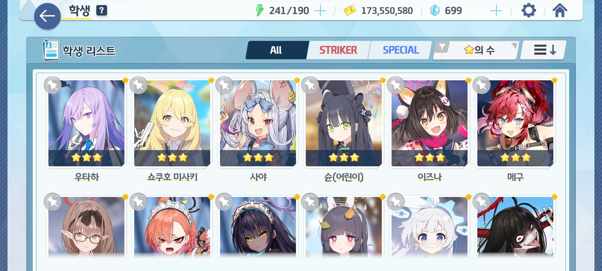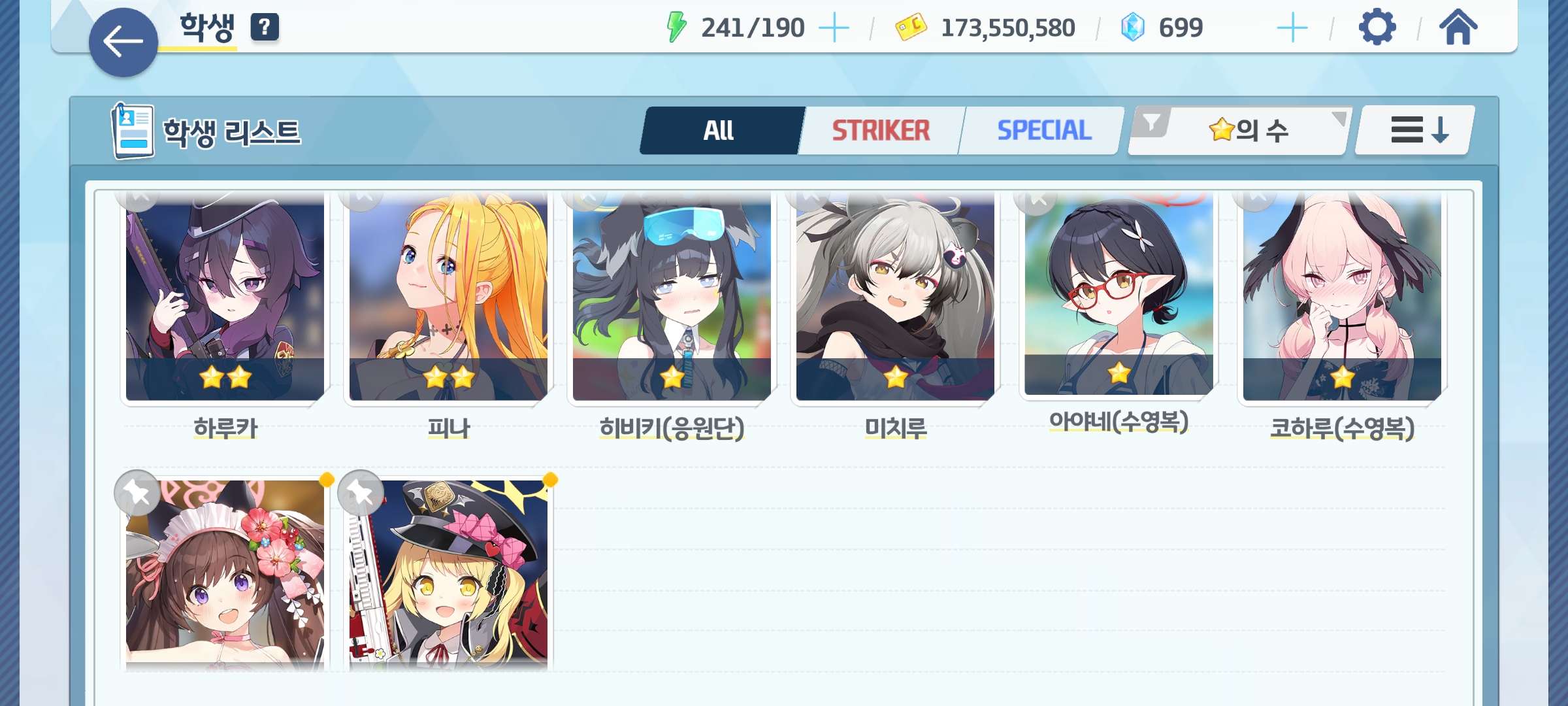 학생 : 아코, 히마리, 수시로, 아즈사, 운유카, 운마리, 키코, 우이, 수우이, 이로하 등등
