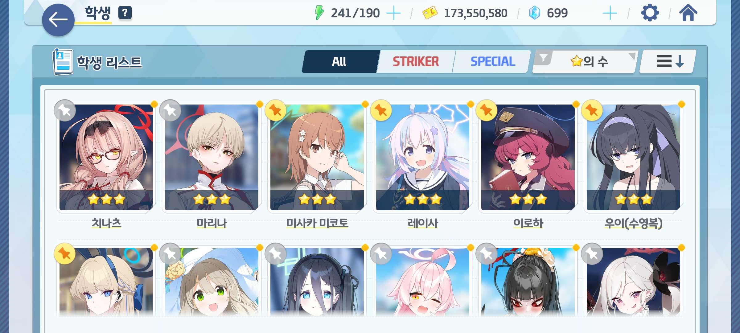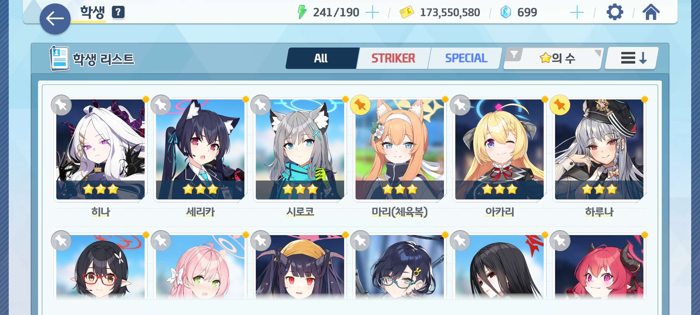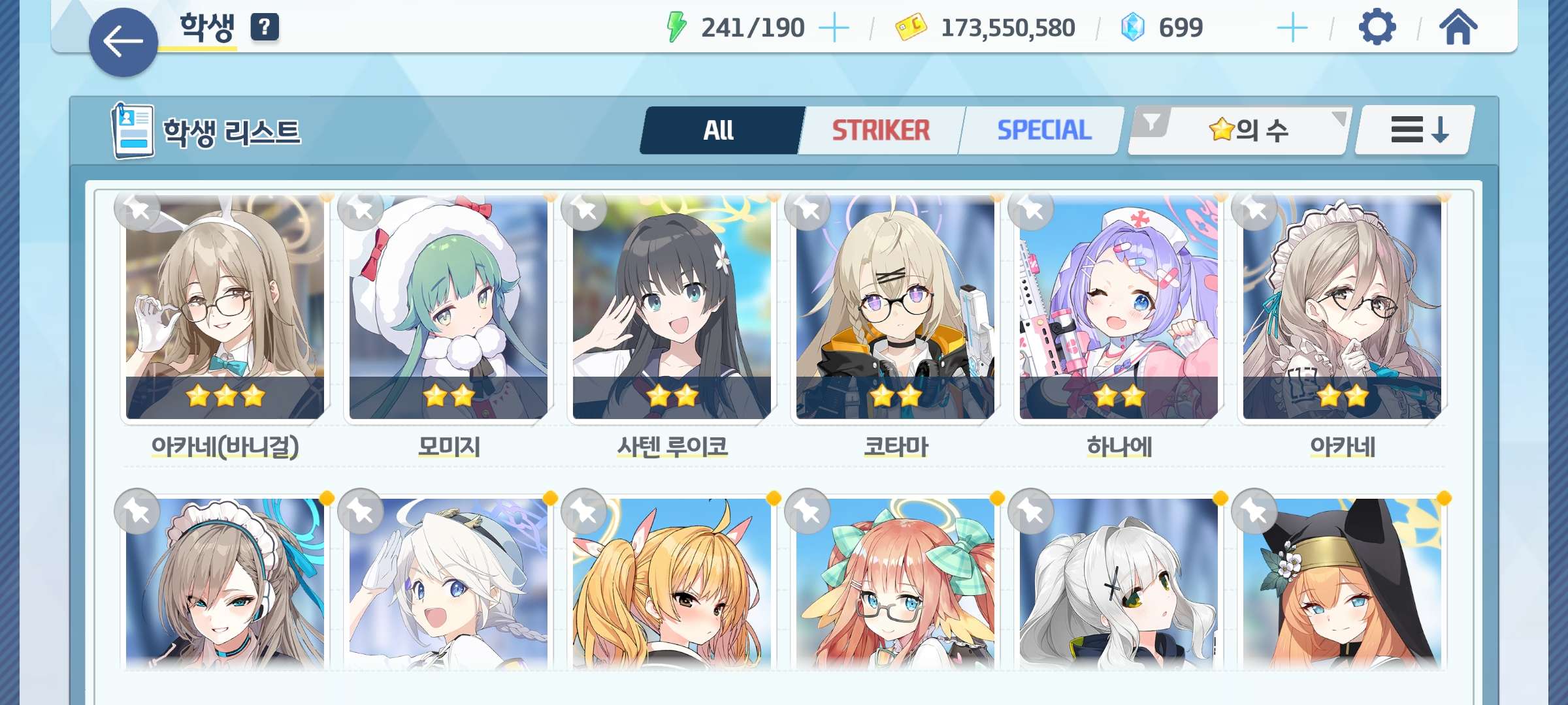 학생 : 아코, 히마리, 수시로, 아즈사, 운유카, 운마리, 키코, 우이, 수우이, 이로하 등등