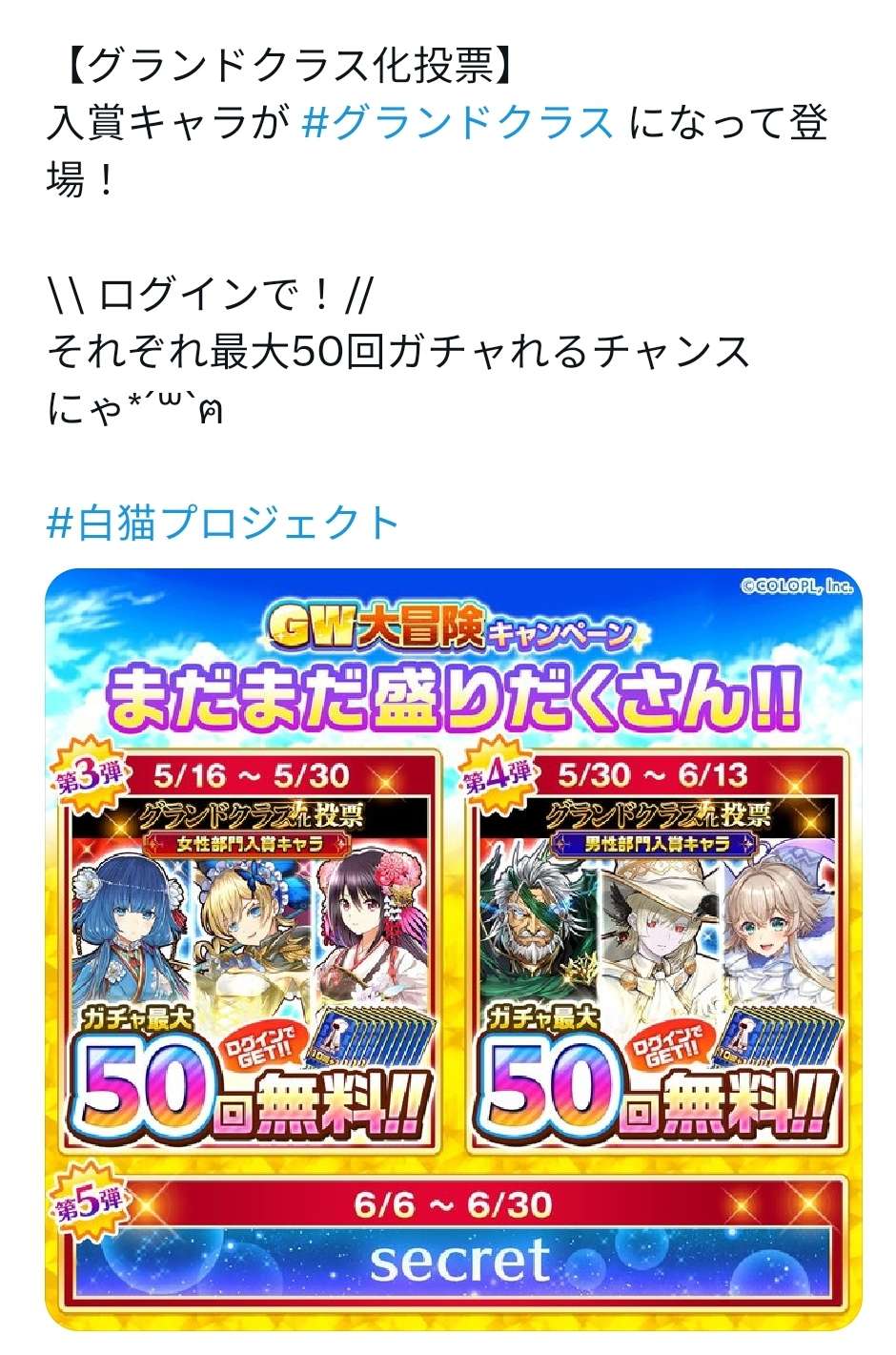 공지에서 4월말가챠에는 가챠 관련 캐릭터 그랜드클래스화를 시킨다고하니 콜라보는 없는것 같네요...