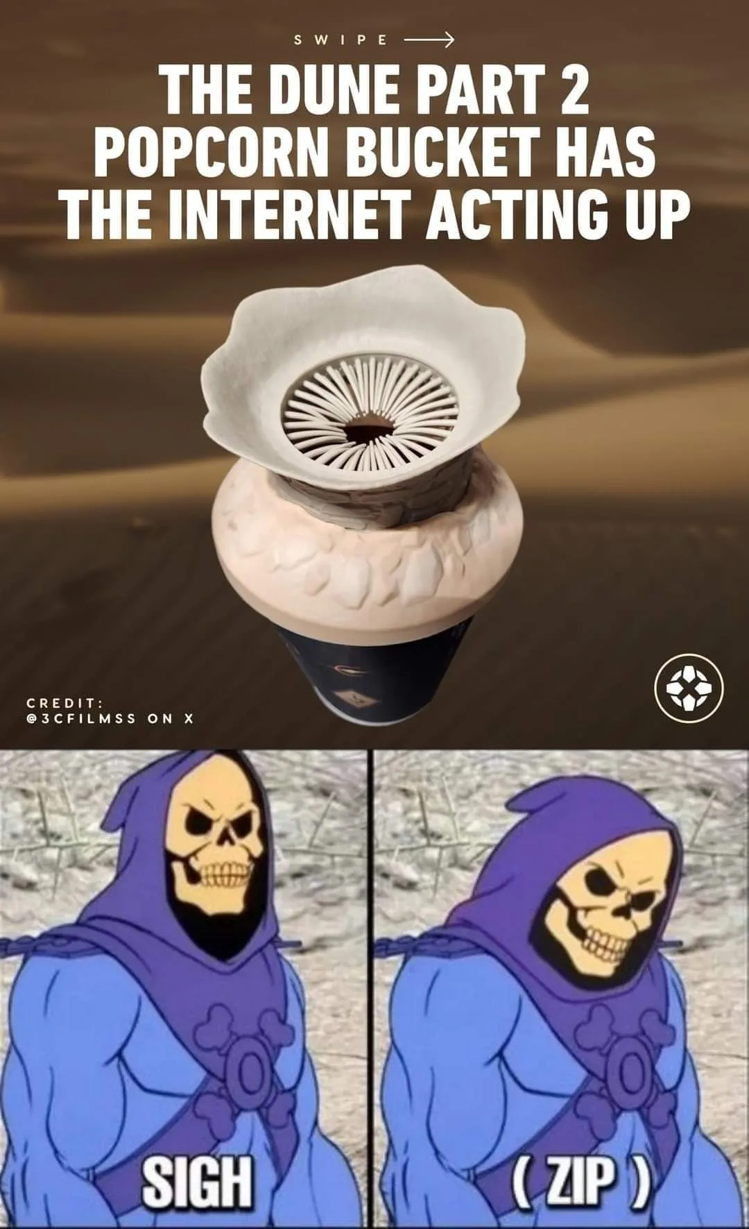 《沙丘2》的周邊,不過搞笑的是,有一款爆米花周邊造型杯,因為外貌太特別,引起網友關注!