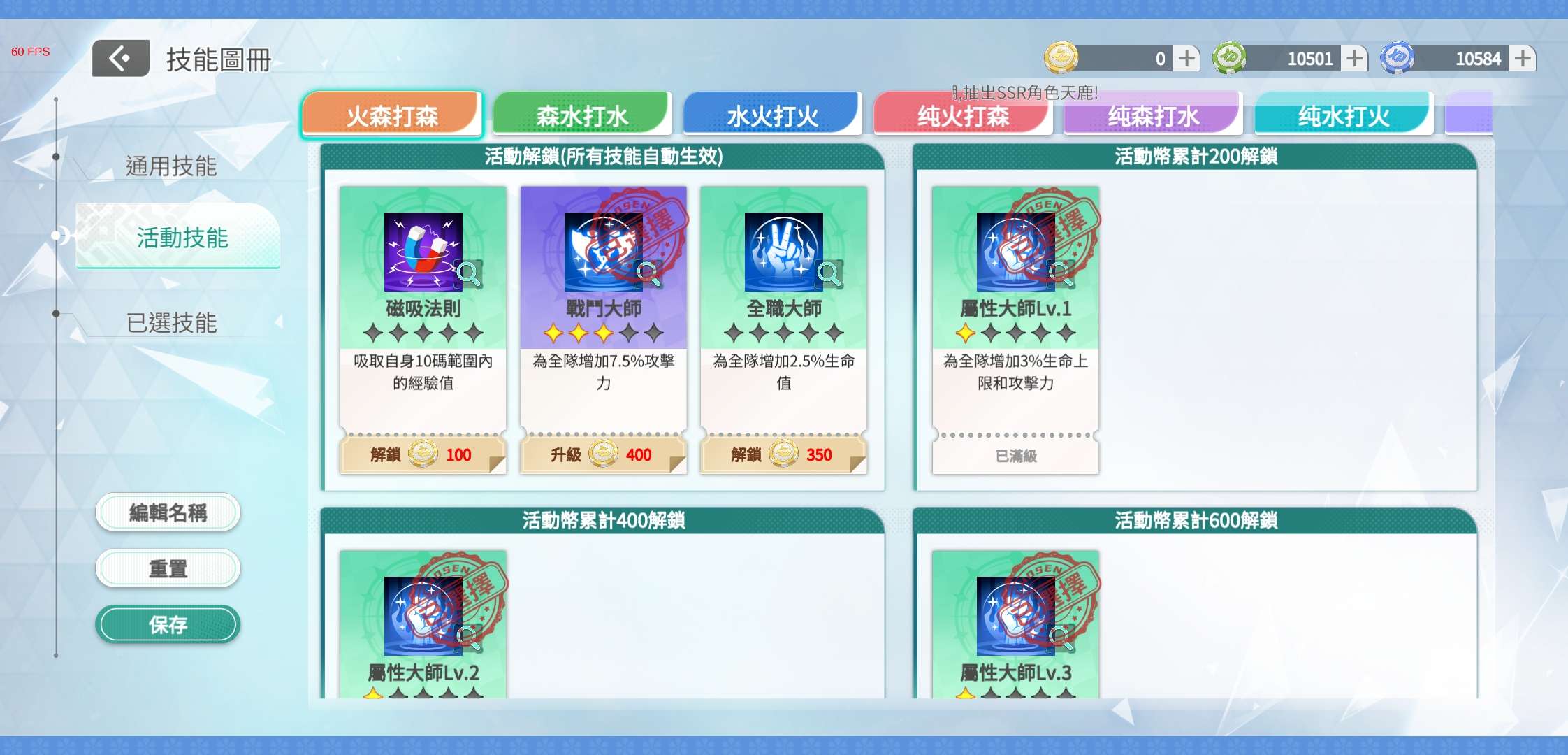 属性大师技能: