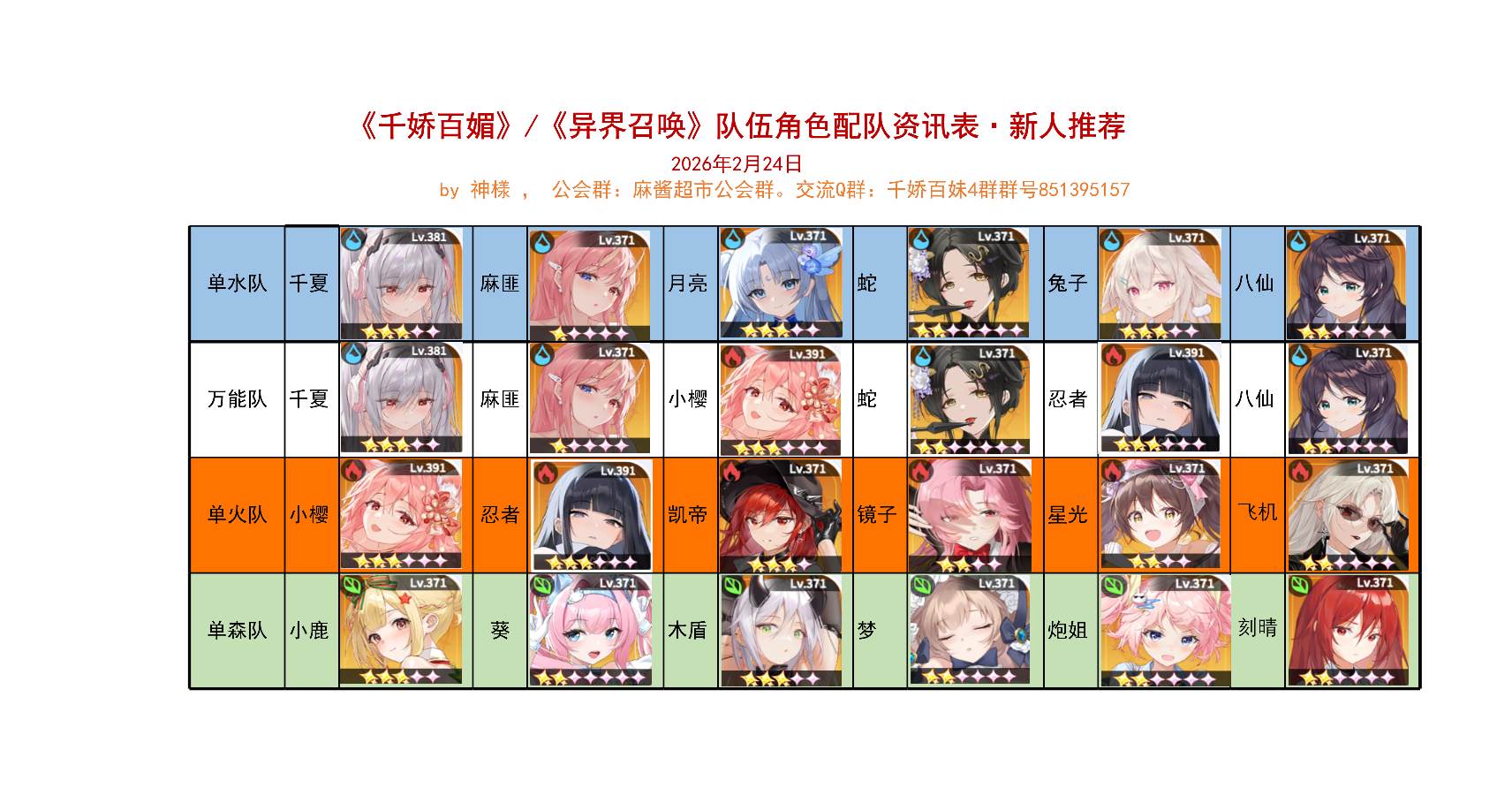 刚这个万能队配置适合目前所有环境。除非游戏限制单系角色上阵。